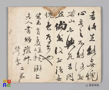정약용 행초 다산사경첩은 정약용이 강진 유배시 다산초당의 사경(四景)을 읊은 시와 외척 윤규로의 아들에게 준 시문 등을 쓴 서첩이다. 2010년 보물로 지정되었다. 다산초당의 경물들 가운데 차 끓이던 부뚜막인 다조, 약을 달일 때 사용하던 샘인 약천, 자신의 성을 새긴 바위인 정석, 연못에 조성한 석가산 등 네 가지에 대해 칠언율시를 짓고 행서로 써서 서첩을 만들었다. 시 뒤에는 윤종진에게 호를 지어주며 써준 호기 등이 있으며, 마지막에 소식의 오언율시 「권야」를 행초로 썼다. 대부분 연대가 기록되어 있어 정약용의 글씨체 변천과정을 살피기에 좋은 자료이다.