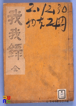 저자가 서제명(書題名)을 ‘아아(我我)’라고 한 것은 “나를 아는 것도 오직 춘추뿐이요(知我者其惟春秋乎) 나를 죄줄 자도 오직 춘추뿐이다(罪我者其惟春秋乎).”라는 공자의 말에서 뽑은 것이다. 이는 당색이 노론이었던 저자가 자기 당파의 정당한 입장을 밝힌다는 뜻에서였다.