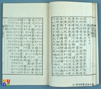 책머리에 정조의 어제서(御製序)가 있고 끝에 규장각제학 김종수(金鍾秀)의 발문이 있다. 내용은 건치(建置)·직관(職官)·진강(進講)·관규(館規)·서적(書籍)·사실(事實) 등 6문으로 되어 있다. 건치에는 홍문관의 연혁을 기록해 집현전의 후신이라 하였다. 직관에는 홍문관의 직제로서 겸직인 영사(領事) 1인, 대제학 1인, 제학 1인과 전임관인 부제학 1인, 직제학 1인, 전한 1인, 응교 1인, 부응교 1인, 교리 2인, 부교리 2인, 수찬 2인, 부수찬 2인, 박사 1인, 저작 1인, 정자 2인을 규정하였다.
